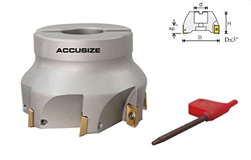 AccusizeTools - 4508-0018, 3" x 1" 90 Deg. Square Shoulder Indexable Face Mill with 7 ps APKT1604 Insert installed