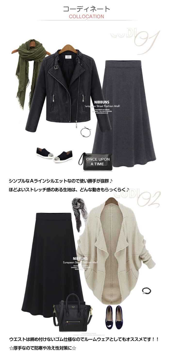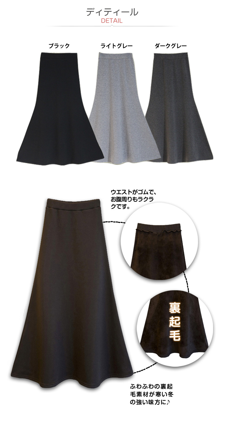 | 極上のふんわりベロアタッチ☆超あったか裏起毛マキシスカートが再登場? 肌触りが良くあたたかみのあるベロア生地は家でも外でも大活躍間違いなし☆シンプルなAラインシルエットなので使い勝手が抜群?ほどよいストレッチ感のある生地は、どんな動きもらっくらく?ウエストは締め付けないゴム仕様なのでルームウェアとしてもオススメです!!☆厚手なので防寒や冷え性対策に☆ | |
