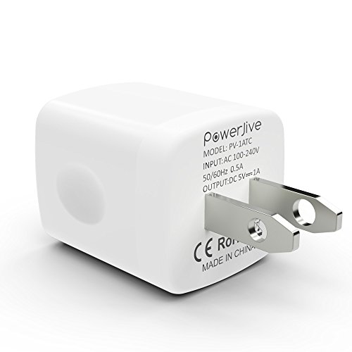 USB Home charger adapter for your iPhone allows charging at home or in the office via your USB cable. Simply plug in a USB cable, and plug the adapter into the wall outlet or power strip. Compact, lightweight, portable, stylish, and easy to store. The PowerJive Wall charger charges your iphone/ipod at the full 1 amp speed. Handy side grooves allows for a slip free removal of the charger from the wall. Input: 100V - 240V 50/60hz Output: 5V 1A (5W) (U.S. & World Standard). Best replacement for your original charger at a fraction of the price. Perfect replacement for your iPhone 2G 3Gs 4 4S 5 5c 5s 6 6s Plus & many ipod's. Backed by PowerJive's lifetime warranty. If your charger ever fails to operate, we will replace it. No questions asked.Feature