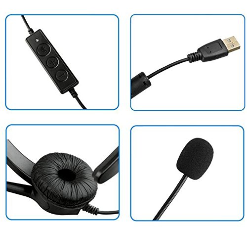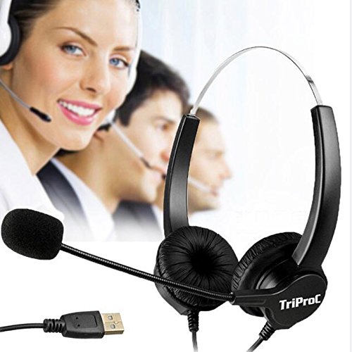 TRIPROC Hands-free USB Corded Binaural Call Center Voip Communication Headset with Noise Cancelling Microphone and Volume Adjuster, for Computer, Skype, Webinar, Phone