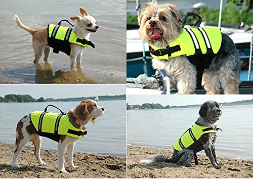 -. Binding : Misc. -. Brand : HARUKOKORO -. Color : Green -. Feature : 1) Bright reflective strips conveniently see your baby's position when he / she played on the water; / 2) Magic stick around the body and neck to provide security; / 3) Sandwich mesh, easy for dog's perspiration and dry clothes; / 4) Brand D button, easy to install with traction; -. Label : HARUKOKORO -. Manufacturer : HARUKOKORO -. PackageQuantity : 1 -. ProductGroup : Pet Products -. ProductTypeName : PET_SUPPLIES -. Publisher : HARUKOKORO -. Studio : HARUKOKORO -. Title : Harukokoro(TM)Reflective Strips Green Dog Life Jacket Life Vest For Dogs XXS-XXL