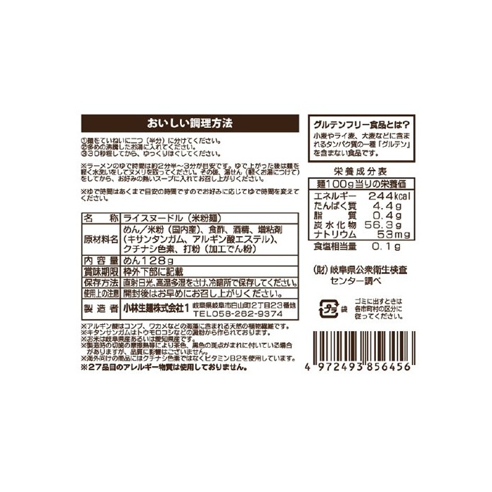 원본상품명: 小林生? グルテンフリ?ヌ?ドル ラ?メンウェ?ブ(ホワイトライス) 128g×24袋