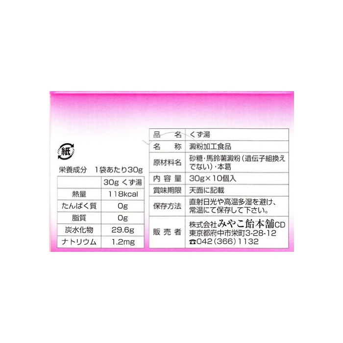 원본상품명: みやこ飴本 和菓子職人の味 くず湯 30g×10袋