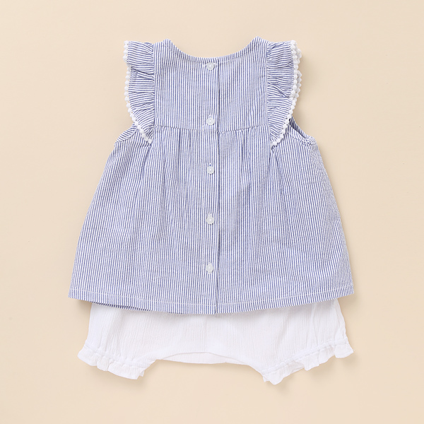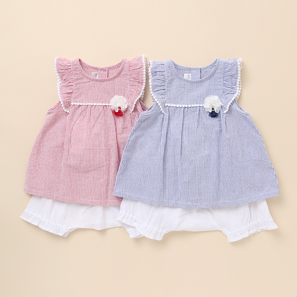 경쾌한 칼라의 스트라이프 지지미 원단으로 시원하고 가벼운 상하복입니다