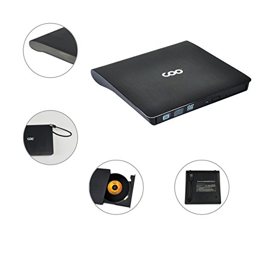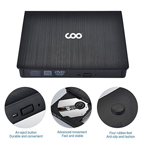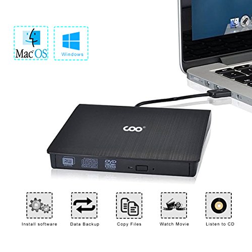 External CD DVD Drive COO USB 3.0 CD DVD-RW DVD ROM Portable Ultra Slim External DVD Drive +Rewriter R/RW Burner Drive for Mac, Macbook Pro Air iMAC, Laptop, Desktop (Black)