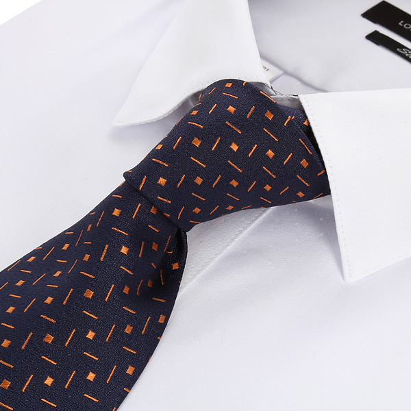 네이비바탕에 오렌지색 기하학적무늬가? 포인트되는 기본넥타이