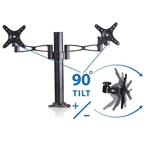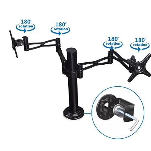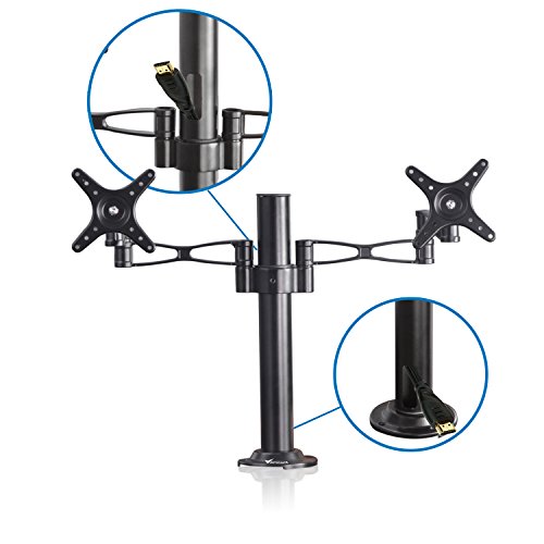 Vemount Height Adjustable Full Motion Articulating Swivel Tilting Dual Flat Panel Computer Monitor Desk Mount Fits Monitors up to 27"