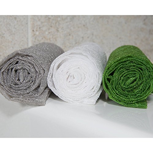 Extra Long (36 Inches) Exfoliating Bath Cloth / Towel (3 Pack) Gray, White, and Green Nylon Bath Cloth / Towel, Stitching on All Sides for Added...