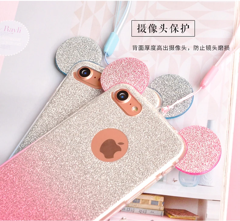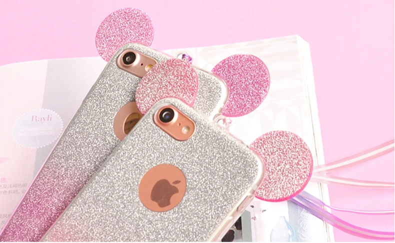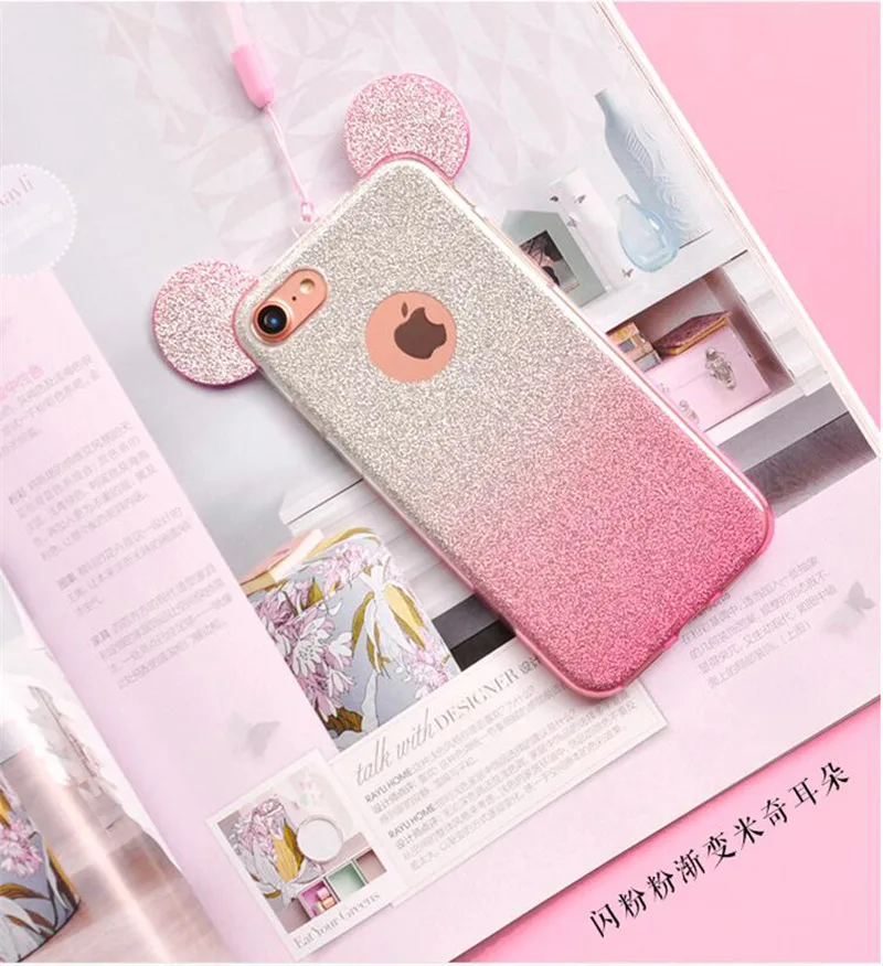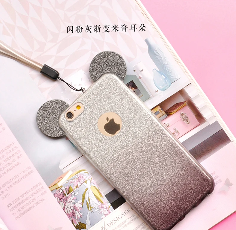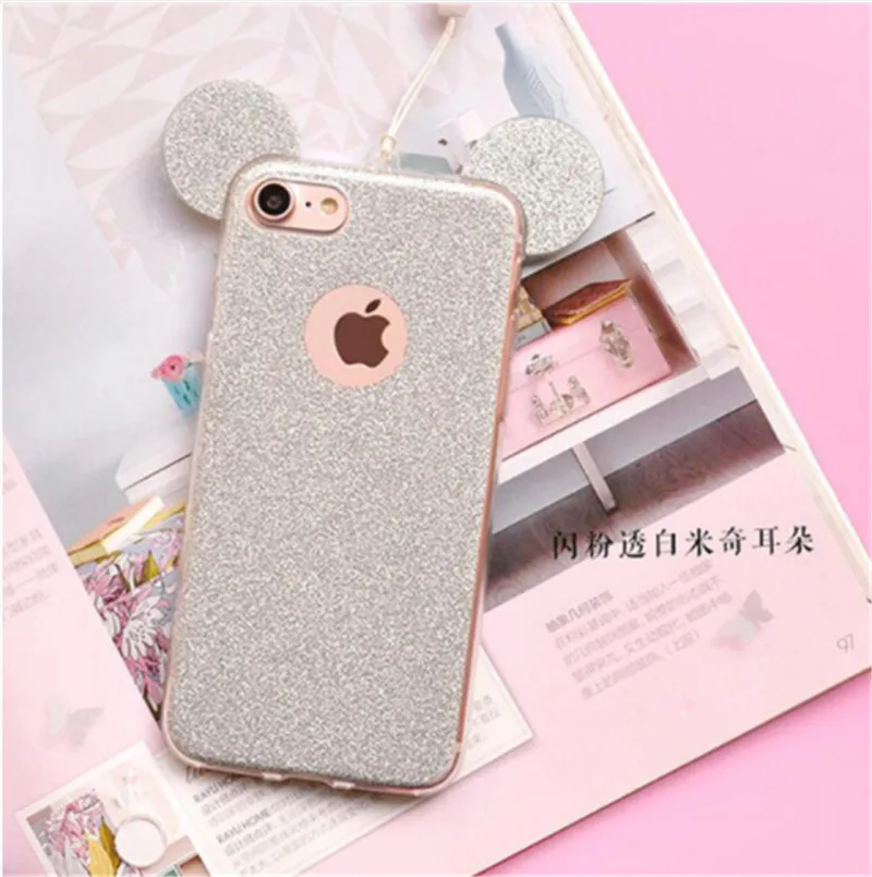 for iphone se 5s 5 glitter case:cqoue for iphone 6s 6 minnie ear case etui