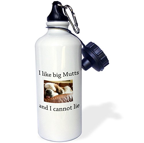 3dRose wb_108317_1 "I like big mutts and I cannot lie" Sports Water Bottle, 21 oz, White