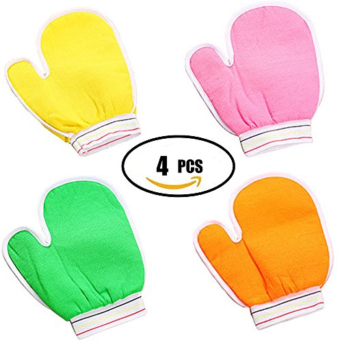 Textured exfoliating body scrub gloves helps to renew your skin and remove all dead skin cells. Leaving your skin glowing and improve blood circulation.