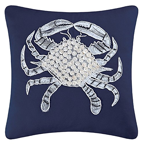C&F Home 84298040C Crab Embroidered Pillow, Blue/White, 18" by 18"