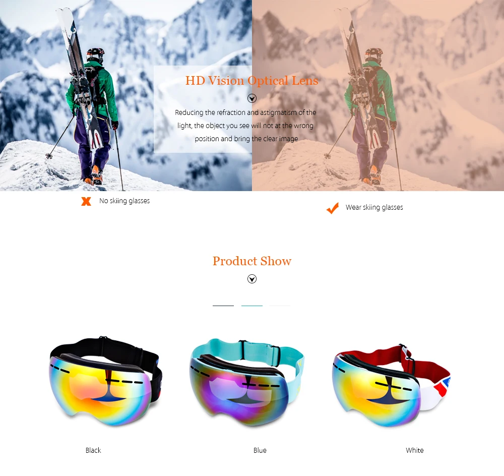 Lenses Optical Attribute:PC double layers anti-fog lens
