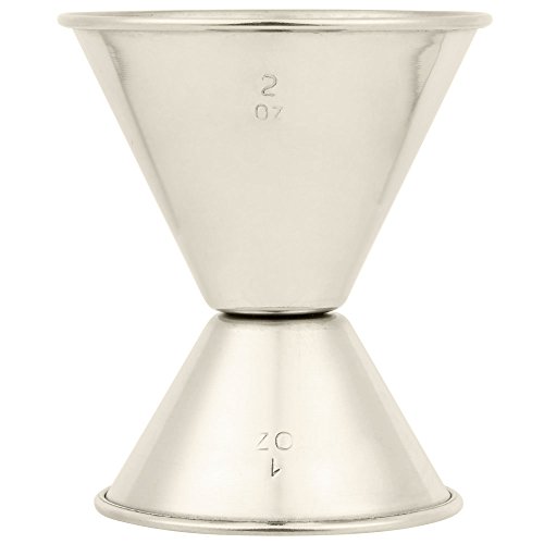 Product Description Provide ultimate precision to your cocktail making with this stainless steel 1 oz. and 2 oz. dual bar jigger! As customers continuously search for the perfectly crafted Manhattan or martini, this bar jigger's precise means of measurement ensures your guests they're getting a cocktail worth their money! Plus, you'll cut down on over-pouring since you'll always have the exact proportion at hand. And it'll save your bartender time and cut down on the amount of dirty dishes. On one side, this jigger measures out 1 oz. of alcohol or other syrup flavoring, and on the opposite end is a 2 oz. jigger -no need for a second measuring utensil! Also avaliable in 3/41 1/2 oz and 1/21 oz. Quickly turn the jigger over to switch between the different capacities while making drinks for your thirsty guests! Each side is colored slightly different so you can tell the different between the capacities without having to read the marked amount. Made of durable stainless steel, this jigger is easy to clean and won't corrode when used with acidic ingredients. Perfect for any bar, restaurant, or home, this dual jigger will make your drink mixing much more consistent and exact! 0