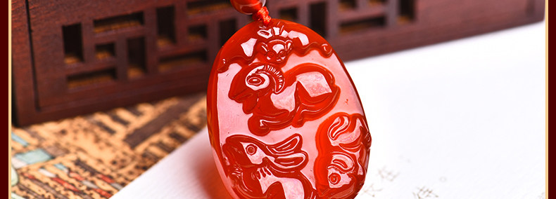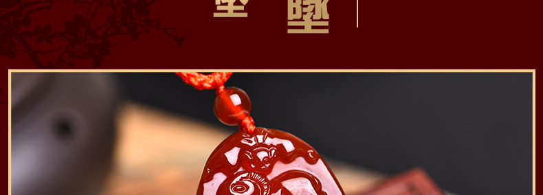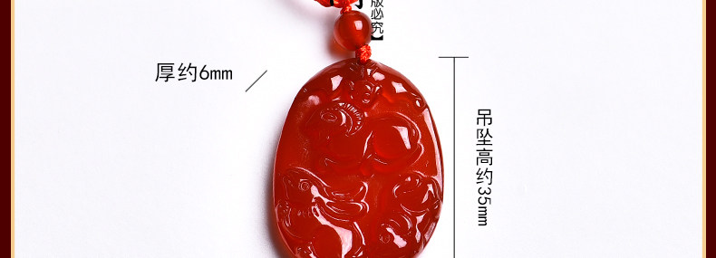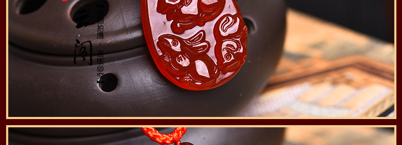 开光天然红玛瑙亥卯未吊坠 猪兔羊三合贵人男女项坠