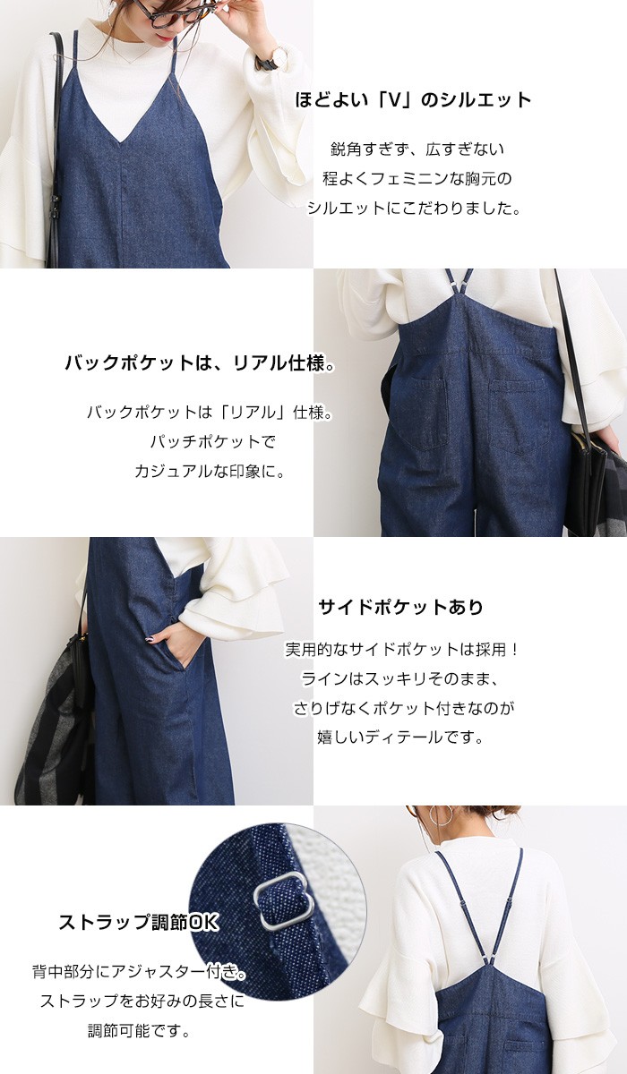 | サイズ | Mサイズ Lサイズ | | 実寸 | M サイズ 着丈:124cm 身幅:47cm ヒップ:52cm 股下:60cm わたり:32cm 裾幅:31cm 肩ひも:(最短)8cm(最長)14cm