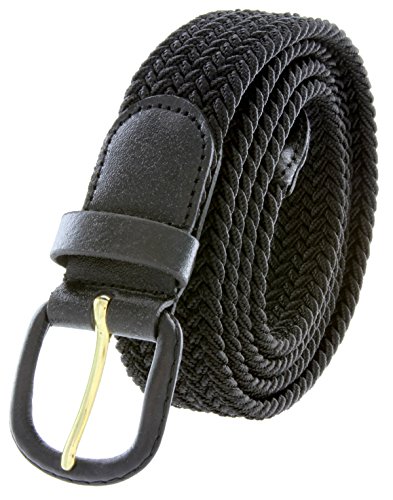 -. Binding : Apparel -. Brand : Belts.com -. Department : mens -. Feature : Comfort Stretch Design - allows wear 3" away from the total length / Soft Elastic Fabric interwoven to stretch and to allow air cooling / Leather Covered Buckle secured by leather inlay and stitches. / Belt Approx: 32mm or 1-1/4" Wide - Buckle Approx: 1-5/8" x 1-5/8" / Measure around where you wear the belt, with your pants on, and find that number in the size range -. ProductGroup : Apparel -. ProductTypeName : ACCESSORY -. Title : Braided Woven Elastic Stretch Belt With Matching Leather Covered Buckle