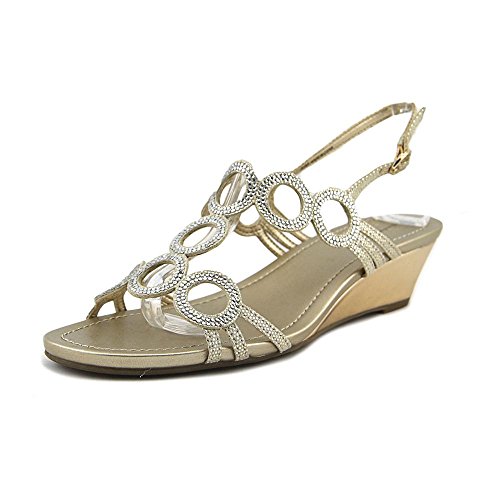 (Bandolino)/Women's/Sandals/DIRECT FROM USA/Bandolino Giani Women Open Toe Canvas Gold Wedge Sandal