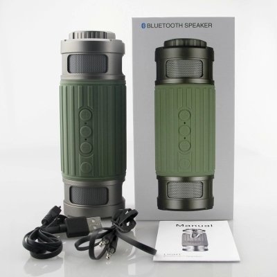 -. Feature : Free switch between 3 play modes: Bluetooth, TF Card, and Audio Input. Compatible with smartphone, tablet, computer, digital media player and so on / For outdoor activities: 2 thumping 5-watt speakers, loud enough; IPX5 waterproof, IP4 dustproof, shockproof, tough enough; 3 modes flashlight torch: SOS, bright and strobe, safe enough / 2200mAh lithium polymer battery, at least 8 hours music playing or 3 hours lighting / Audio file format supported: APE/ FLAC/ MP3/ WAV/ WMA, enjoy lossless quality music / Phone capabilities: if your phone is in the bag, operate on the speaker, answer and redial last call easily