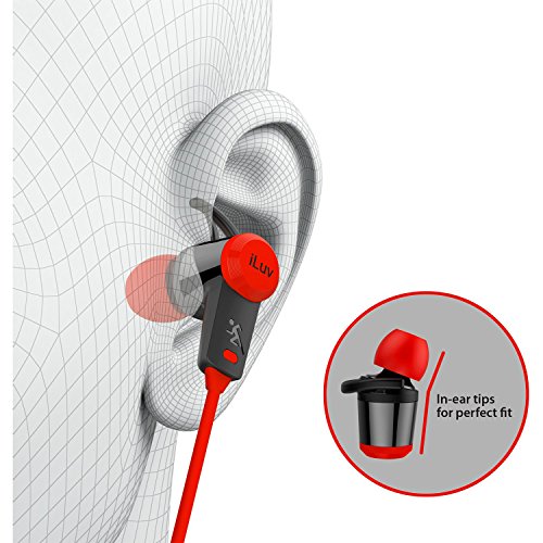 Title : iLuv FitActive Jet Inner Ear Bluetooth Stereo Sport Headphones (Red) with Earbuds Case Stylus Pen Cleaning Cloth Kit