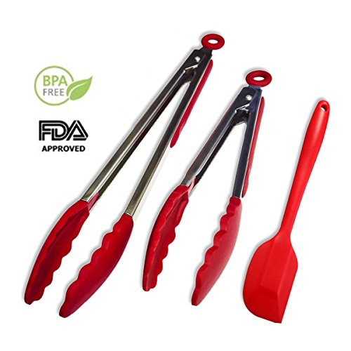 -. Feature : BONUS: Order today to get a 8.5" SILICONE SPATULA FOR FREE(Value More Than $5.00) which you can use in thousands of different ways in the kitchen / SAFE: 430# stainless steel & 100% FDA food-grade non-stick silicone heat resistance up to 480° F for easy & safe food. Whether hot or cold, our premium silicone does not expand or contract to trap food and bacteria / SPECIAL DESIGNED: Soft ergonomic silicone grips handle for a perfect grip. Push in to unlock, pull out to lock. Smooth locking action makes them easy to store with all your other kitchen gadgets. O Ring for hanging saves storage space / EASY TO CLEAN: Our tongs desighed to leave no space for bits of food to hide or bacteria to breed. Even after a very short wash, your new tongs will be super-clean and safe / MULTIFUNCTION: Perfect for non-stick cookware, the BBQ grill, as salad tongs, serving tongs dessert and finger food tongs, appetizer tongs, buffet tongs, taco tongs, steak tongs and so on