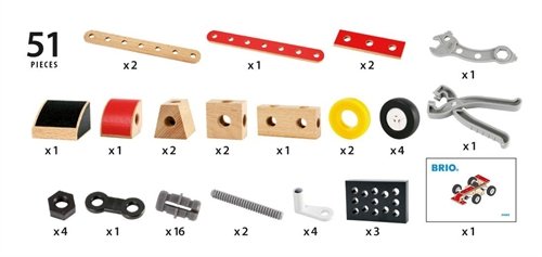 -. Feature : Rennwagen mit vier großen Rädern. Schraubenschlüssel, Zange und Bauanleitung sind enthalten. 51 Teile. Weitere Modellanleitungen erhältlich auf briobuilder.net / Alle Holzteile aus FSC-zertifiziertem Holz / Es sind mehrere Modelle baubar / Anleitungen und weitere Infos auf briobuilder.net