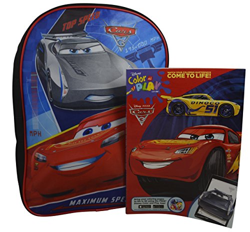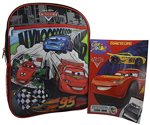 Disney Pixar Cars Boys' Large 15" Backpack School Bag w/ Bonus Stationery. Your choice of Cars keychain or Cars Coloring Book