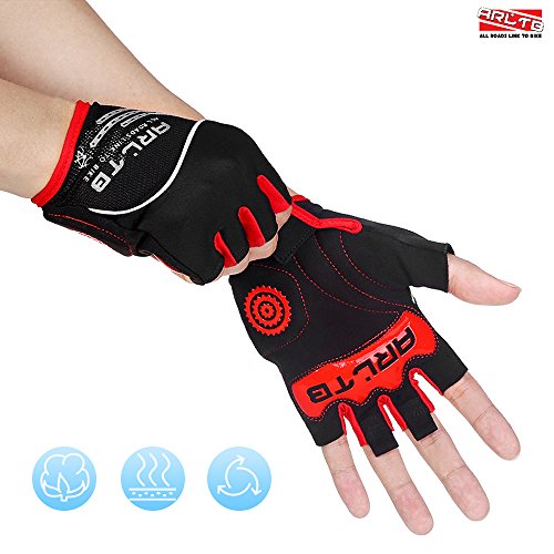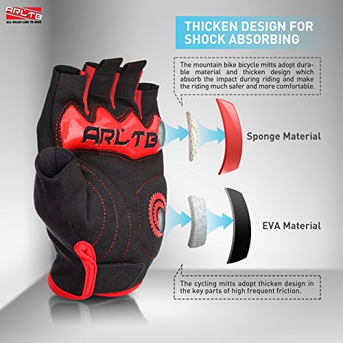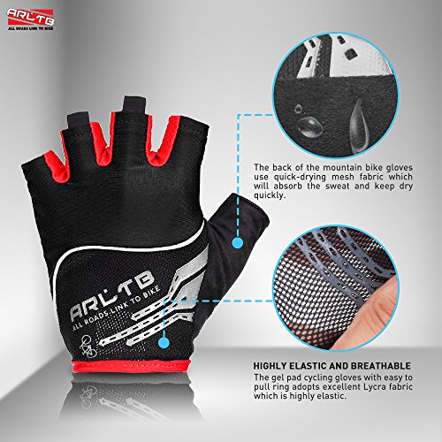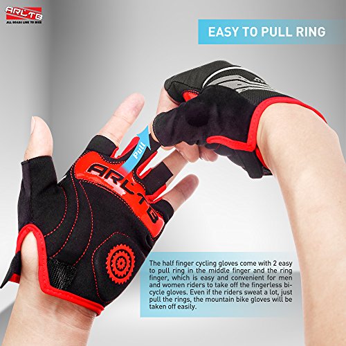 -. Brand : Arltb -. Department : unisex-adult -. Feature : EASY TO PULL RING The half finger cycling gloves come with 2 easy to pull ring in the middle finger and the ring finger, which is easy and convenient for men and women riders to take off the fingerless bicycle gloves. Even if the riders sweat a lot, just pull the rings, the mountain bike gloves will be taken off easily. / THICKEN DESIGN FOR SHOCK ABSORBING The cycling mitts adopt thicken design in the key parts of high frequent friction. The parts between thumb and index finger used to exist high friction. The mountain bike bicycle mitts adopt durable material and thicken design which absorb the impact during riding and make the riding much safer and more comfortable. / HIGHLY ELASTIC AND BREATHABLE The gel pad cycling gloves with easy to pull ring adopts excellent Lycra fabric which is highly elastic. The fingerless riding gloves will fit riders hand and fingers closely. The back of the mountain bike gloves use quick-drying mesh fabric which will absorb the sweat and keep dry quickly. / TOWEL CLOTH FOR WIPING SWEAT The thumb side part of the half finger cycling mitts specially adopts towel cloth for the purpose of wiping sweat for men and women riders during long time mountain bikes riding. Bike riders with this fingerless cycling gloves do not need to take additional towels. / PACKAGE A pair of cycling gloves -. IsAutographed : 0 -. IsMemorabilia : 0 -. Label : Arltb -. Manufacturer : Arltb -. ProductGroup : Sports -. ProductTypeName : OUTDOOR_RECREATION_PRODUCT -. Publisher : Arltb -. Studio : Arltb -. Title : Arltb Cycling Gloves Bike Bicycle Gloves Padded Fingerless Biking Gloves Mittens with Easy to Pull Ring Shock Absorb Lycra Breathable For Bike Riding BMX Bikes Mountain Bike Free Cycle Motorcycle Dirt