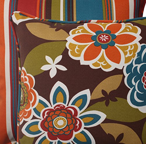 Pillow Perfect Indoor/Outdoor Annie Westport Reversible Corded Throw Pillow, 18.5-Inch, Chocolate, Set of 2