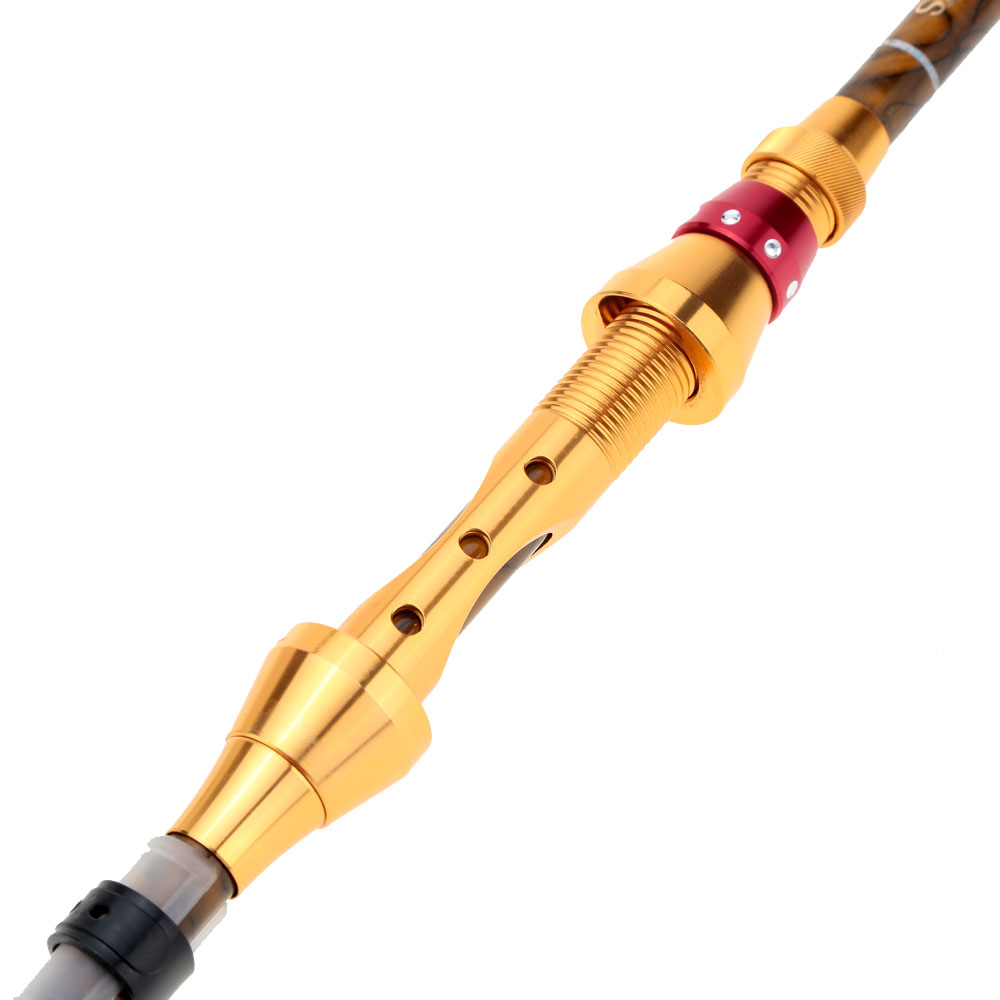This fishing rod is made from carbon fiber, strong and durable.