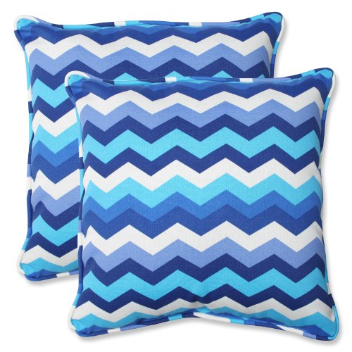 Pillow Perfect Outdoor Panama Wave Throw Pillow, 18.5-Inch, Azure, Set of 2