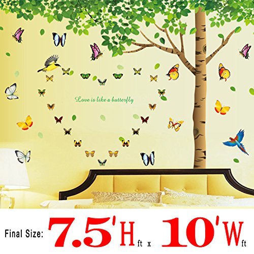 -. Title : Colorful-decals© 7.4'(h) X 9.7'(w) More Attachments for Butterflies Extra Large Wall Decor Under the Fresh Green Leaves Quote Green Tree to Enjoy Easy and Relaxed Wall Stickers for Living Room Bedroom Wallpops Decal