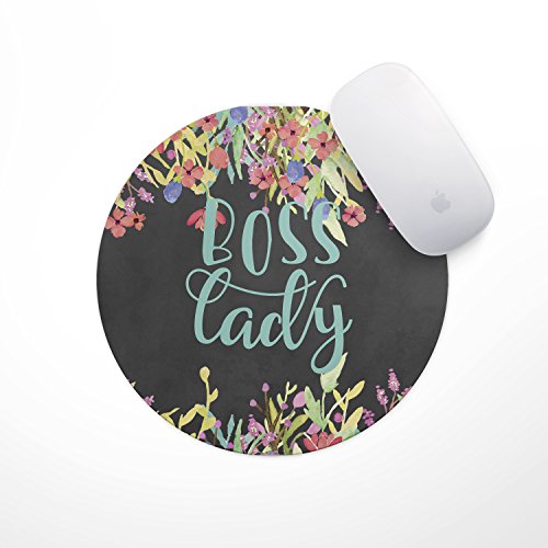 -. Feature : ADD SOME COLOR: This round mouse pad from The Navy Knot is all you need to add a bit of color, cheer & positive vibes to your home workstation or office desk; Premium materials, well-researched design & durable build / OPTIMIZED FOR EXTREME COMFORT: Measuring at 7.5" x 0.25", this mouse pad brings unparalleled comfort to your hands & wrists as you toil away for long hours; Ergonomic laptop & desktop computer mouse pad for regular use / NATURAL RUBBER BASE: Unlike ordinary mousepads that use synthetic polymers, The Navy Knot Mouse Pad uses natural, biodegradable rubber base; Uniform, non-slip grip on all solid surfaces / PRECISION TRACKING: This mousepad carries a fine-textured top with the finish of soft, silky fabric that eases the mouse movement, enhances optical tracking & gives you a superb user experience; Easy to clean mouse pad / STAY INSPIRED, STAY PRODUCTIVE: The Navy Knot Mouse Pad, featuring a cheerful, floral design in blue & chalk black along with an inspirational quote 'Boss Lady', is a great home/office décor accessory & gift; Click 'Add to Cart & order today