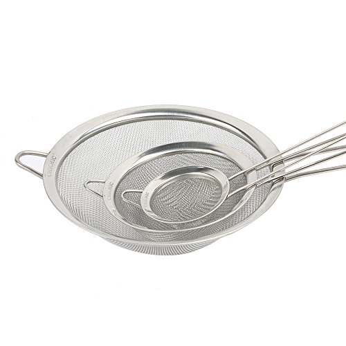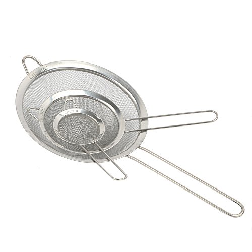 CHICHIC Set of 3 Stainless Steel Kitchen Fine Strainers Tea Fine Y Mesh Strainers Juice Egg Filter 3 Sieve Colander Sets Wire Filter Mesh for Tea Coffee Food Rice Vegetable with Handle