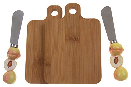 [Product Information]- Peach Lover's Gift Set - Bundle Includes: 2 Peach Handle Cheese Spreaders & 2 Wood Rectangular Cheese Boards