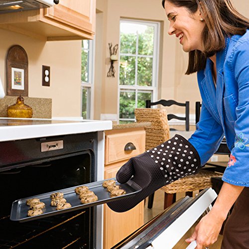 HEAT RESISTANT - Up to 450°F, no more worries of burning your hands in your oven or outdoor grilling. They also can be used for baking, barbecuing, cooking, and holding hot pans and pots. The gloves grip helps with jar opening.