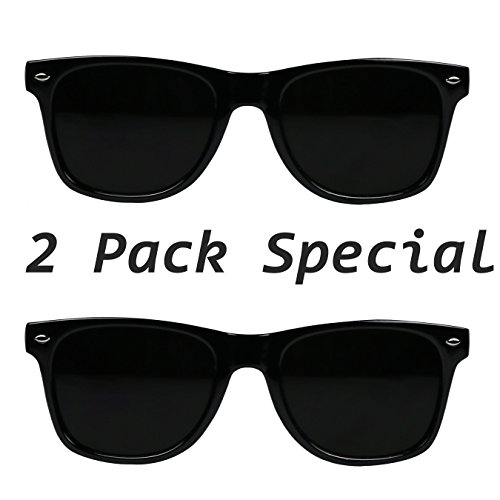 Product Description The unique retro horned rims frame design has become an iconic eyewear style of pop culture fashion. Although endless versions exist of this timeless frame, the original glossy dark black frame will always remain a standard version. Due to its high quality craftmanship and durability, this item has become and remained our most popular. Made with high quality glossy finish frame, spring metal hinges and 100% UV protected dark black lenses. This listing has the option of a single pair OR 2 PACK SAVERS DEAL ! buy one for you and a friend :) 0