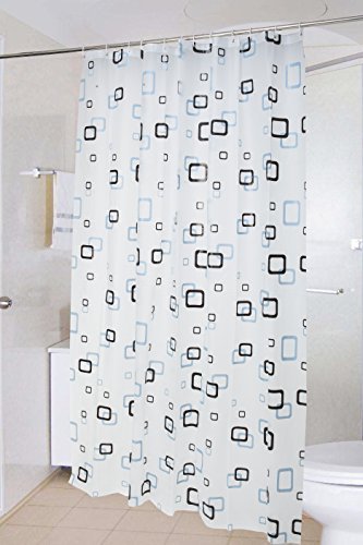 Potentcera PEVA shower curtain mildew Resistant Polyester Odorless Water-Repellent Curtain box splicing style with 12 white ring-7272 "(grid)
