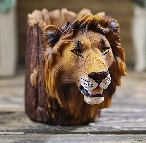 JM-capricorns Novelty Decorative Resin Lion Head Pencil Holder Fashion Creative Pen Holder,cute Pencil Holder for Desk