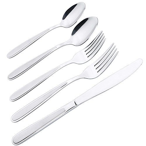Product Description 18/0 Stainless Steel Mirror Polished Tableware Flatware Set, 20-Pieces Cutlery Dinnerware-Service for 4, Heat Resistant, Not-Bend and Rust-Proof Guarantee, 4 Each-Dinner Forks, Teaspoons, Knives, Salad Forks and Tablespoons. Bend easily? Many affordable flatware sets are of poor and thin construction and bend easily. They are even not heat resistant. Yes, you pay what you get. They are cheap price but you will get unpleasant experience, throw away and spend more to get a new set. Why not pay a little more and get a much higher quality set at one time? The Brightown 20-Piece Flatware Dining Set is sturdy enough to stand up to everyday use but also beautiful enough to grace the fanciest table. We worked hard to design a flatware set that gives you all the features you want at an affordable price, including: Durable strong construction that will last for years to come Well-balanced to fit securely in your hand, not too big or too small Heat-resistant, will not bend and dishwasher safe Designed to fit well in your hand Frame an everyday dinnerware pattern or complement a dressy special-occasion table with the clean, gently rounded lines of Brightown's Mooncrest flatware. Made of quality 18/0 stainless steel with a lustrous mirror polish, this durable yet elegant design features slightly elongated working ends balanced by slender flared handles with softly pointed tips. The curved edges make for a comfortable fit in the hand, and the relatively flat profiles create a low-key, sophisticated look. Affordable as well as enduringly stylish, Mooncrest offers an easy way to smarten up dining experiences for years to come. 0