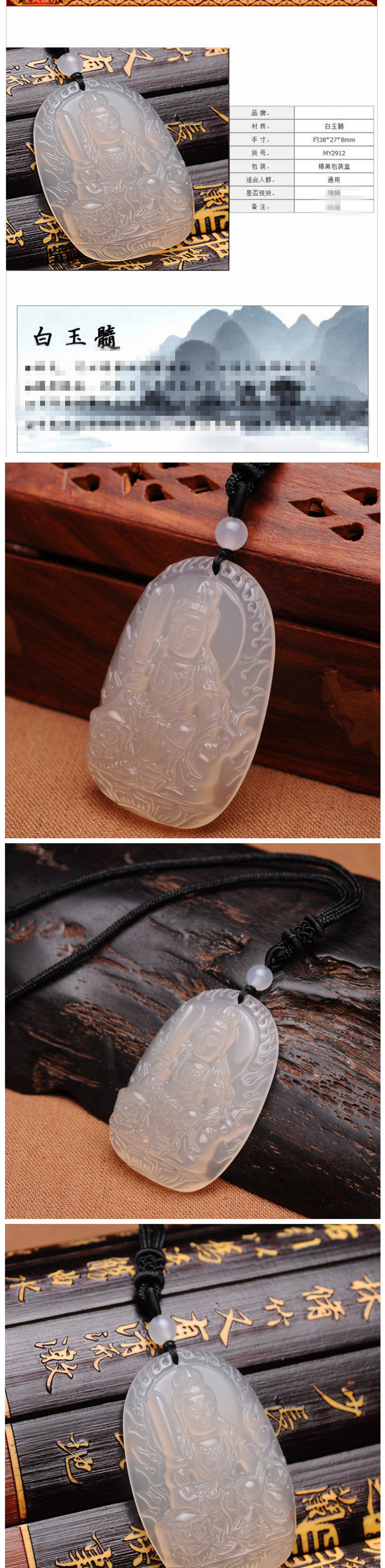 开光天然白色玉髓生肖兔本命佛守护神玉髓文殊菩萨吊坠