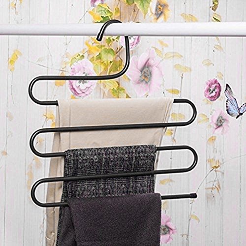 -. Title : Metal Magic Pants Hanger Space Saver Rack Jeans Scarf Tie Closet Tool LE