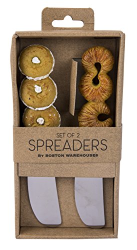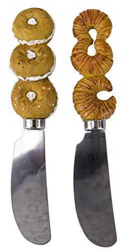 The Boston Warehouse Set of 2 Wide Stainless Steel Blade Spreaders with Hand-Painted Handle, Croissants and Bagles