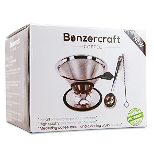 STOP COMPROMISING ON TASTE! It's time to say goodbye to those paper filters and a warm hello to an ultra fine double mesh. The Bonzercraft Coffee can provide an exceptional start to your day. However you take your coffee, this coffee dripper will help you get there. Made from high quality and durable materials, the Bonzercraft Coffee Cone dripper is equipped to give you a bold and beautiful taste every time. You're in the driver's seat for the creation of a coffee masterpiece. You choose all the ingredients and the Bonzercraft Coffee is your co pilot. Enrich your life with homemade coffee it's much quicker than waiting in line at the shop around the corner. MAKE MEMORIES! The possibilities are limitless with this reusable coffee dripper. You can use it multiple times a day after a quick and easy wash. Make room for the Bonzercraft Coffee in your cozy home and forget about that complicated coffee machine. Worrying about cleaning? Don't worry, our perfectly crafted cleaning brush makes your life much easier. Get the satisfaction you deserve out of each cup of coffee. Keep yourself happy, and any quests you may have in your home. Create happy memories with a shared beverage. 100% SATISFACTION GUARANTEE! Our Bonzercraft Coffee Filter is backed by our manufacturer 60 day money back guarantee with 1 year free replacement warranty! Click on ADD TO CART button and get your Bonzercraft Coffee Filter today! 0 |