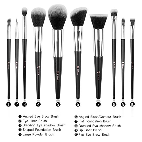 10Pcs Makeup Brushes set for Foundation,Contour,Powder,Eyebrow,Eyeshadow,Concealer,Eyeliner and Lip