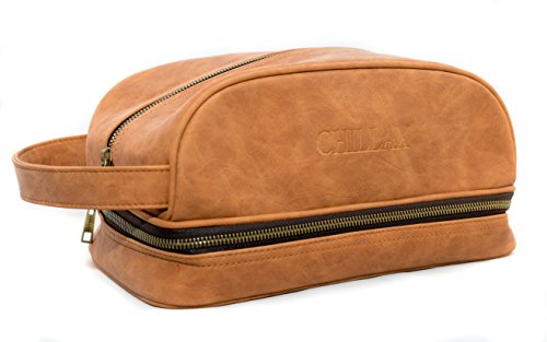 Toiletry Bag by Chillax Rugged Leather Travel Dopp Kit - Best Mens Shaving Kit Accessories for Traveling Men and Women, Perfect for Cosmetics, Toiletries...