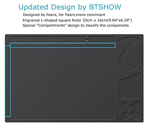 GIFT FOR TECHIE: Based on experiences of refurbishment of mobile phone and chips (Motorola phone and Quallcomm chips), BTSHOW silicone soldering mat is a perfect electronics mat for smartphone tablet, PC,even watches or other electronic instruments repairing etc.