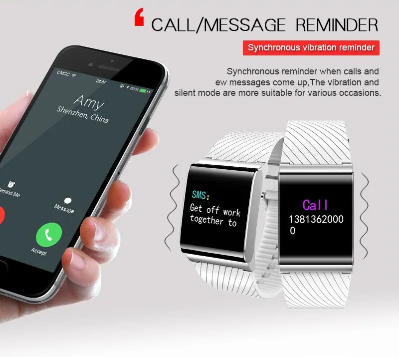 Function:Passometer,Fitness Tracker,Sleep Tracker,Message Reminder,Call Reminder,Push Message,24 hour instruction,Alarm Clock,Week,Month,Heart Rate Tracker,Interactive Music,Calendar,Countdown