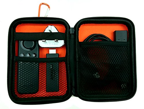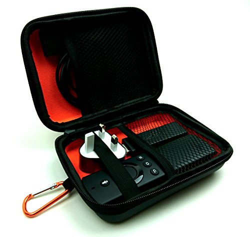 TechtidyTM Eva Case by HexnubTM is designed to fit 1st Generation Amazon Fire TV Stick, Alexa Voice and Echo Dot Remotes, Including: remote, cables and accessories. Orange soft inner lining, high quality black mesh and brushed effect hard shell makes the perfect travel case. Fits all international plugs types. Amazon Fire TV stick sold separately.
