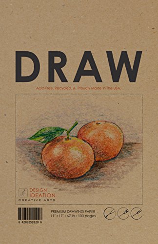 Premium Paper Drawing Book for Pencil, Ink, Marker, Charcoal and Watercolor Paints. Great for Art, Design and Education. (BIG 11" x 17" (100 Pages))